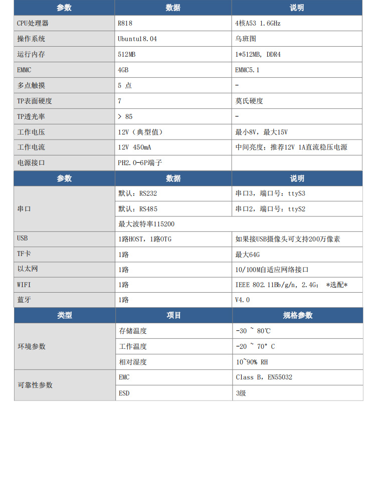 - 参数规格表