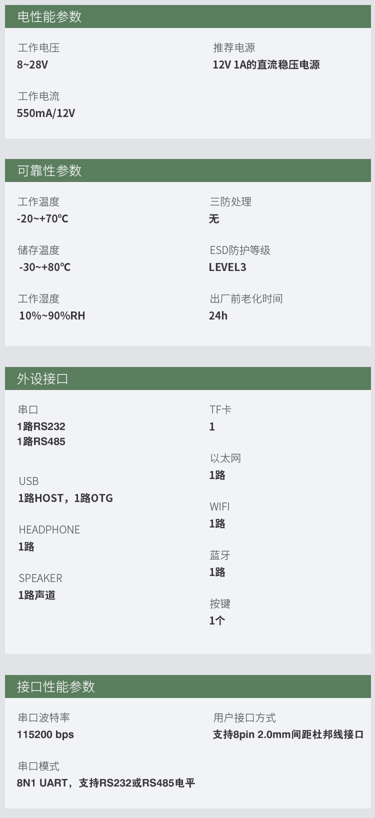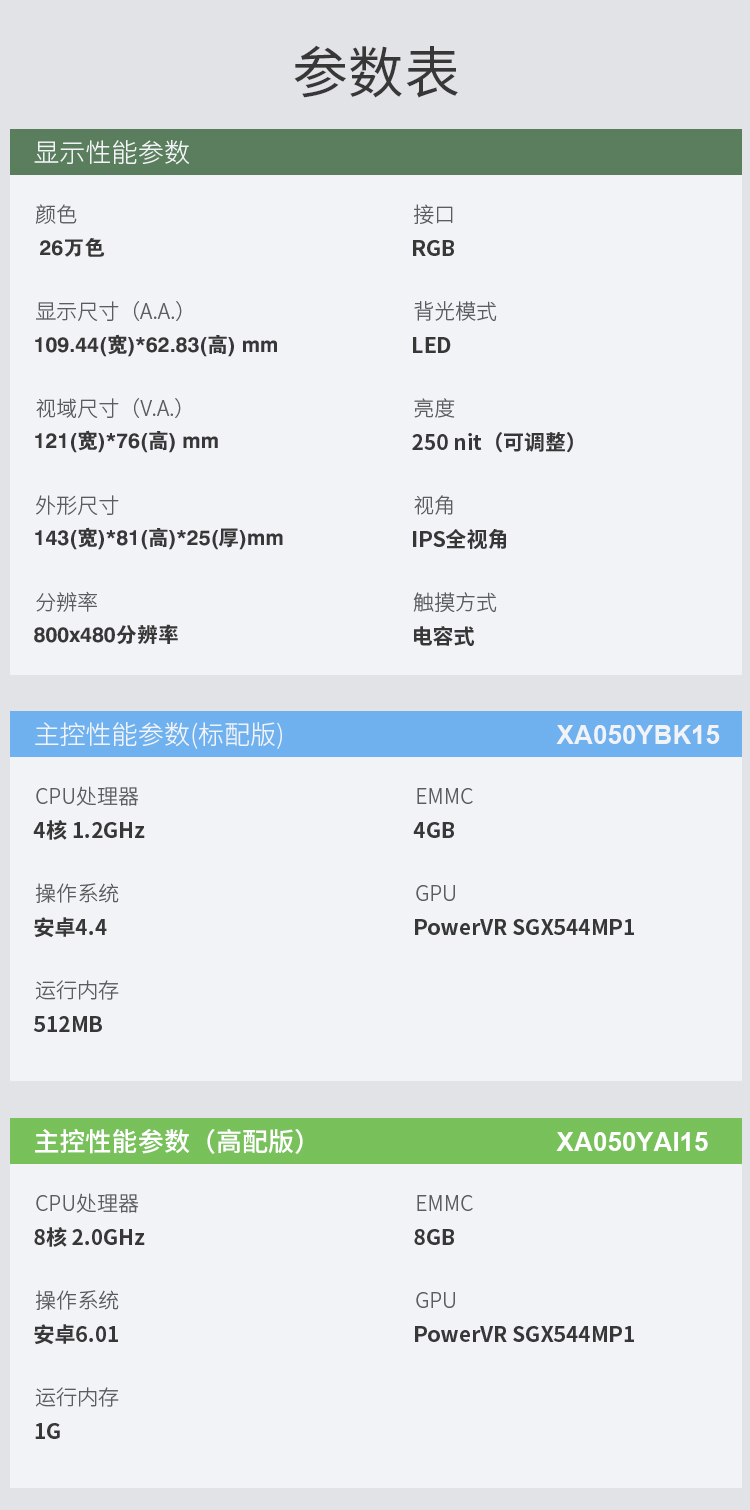 - 参数规格表