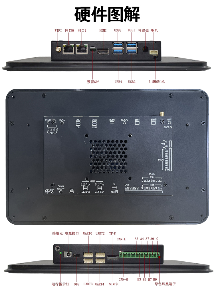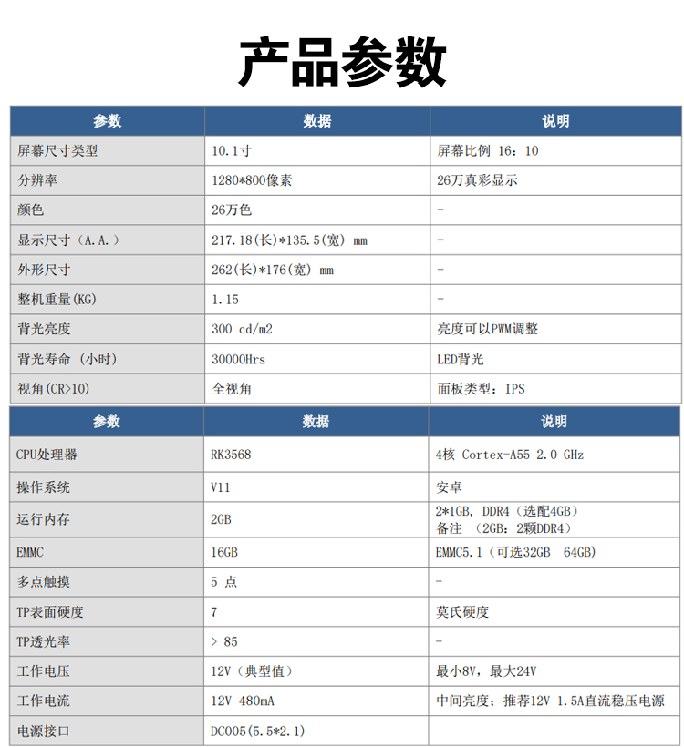 特点描述:XA101GHM15W(B)系列,是15vip太阳成基于ARM 4核A55架构自主研发设计的一款工业安卓智能触控显示终端,由底板、LCD显示屏及触摸屏组成。 搭载瑞芯微RK3568四核处理器,安卓V11操作系统,支持自主设计APK程序安装;全新丽色显示系统,支持自主调节冷暖色调;支持4K视频播放, 支持1080P视频通话、200万双摄; 接口资源丰富, 用户可通过 RS232、RS485、CAN等串口端口与外部设备进行通信;也可以通过WIFI/4G/以太网联网、浏览网页、播放音乐、播放视频、远程升级更新等。