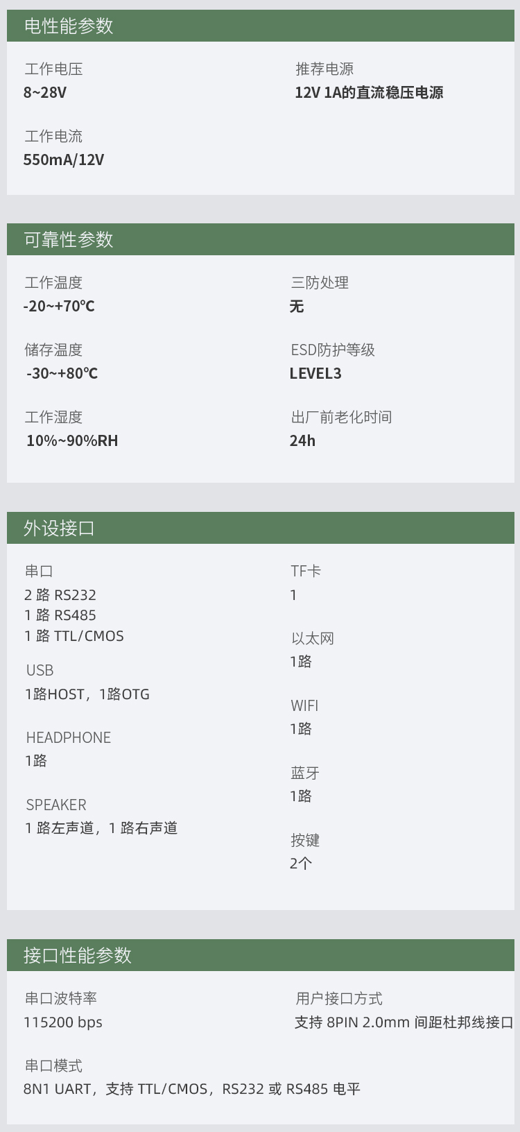 - 参数规格表