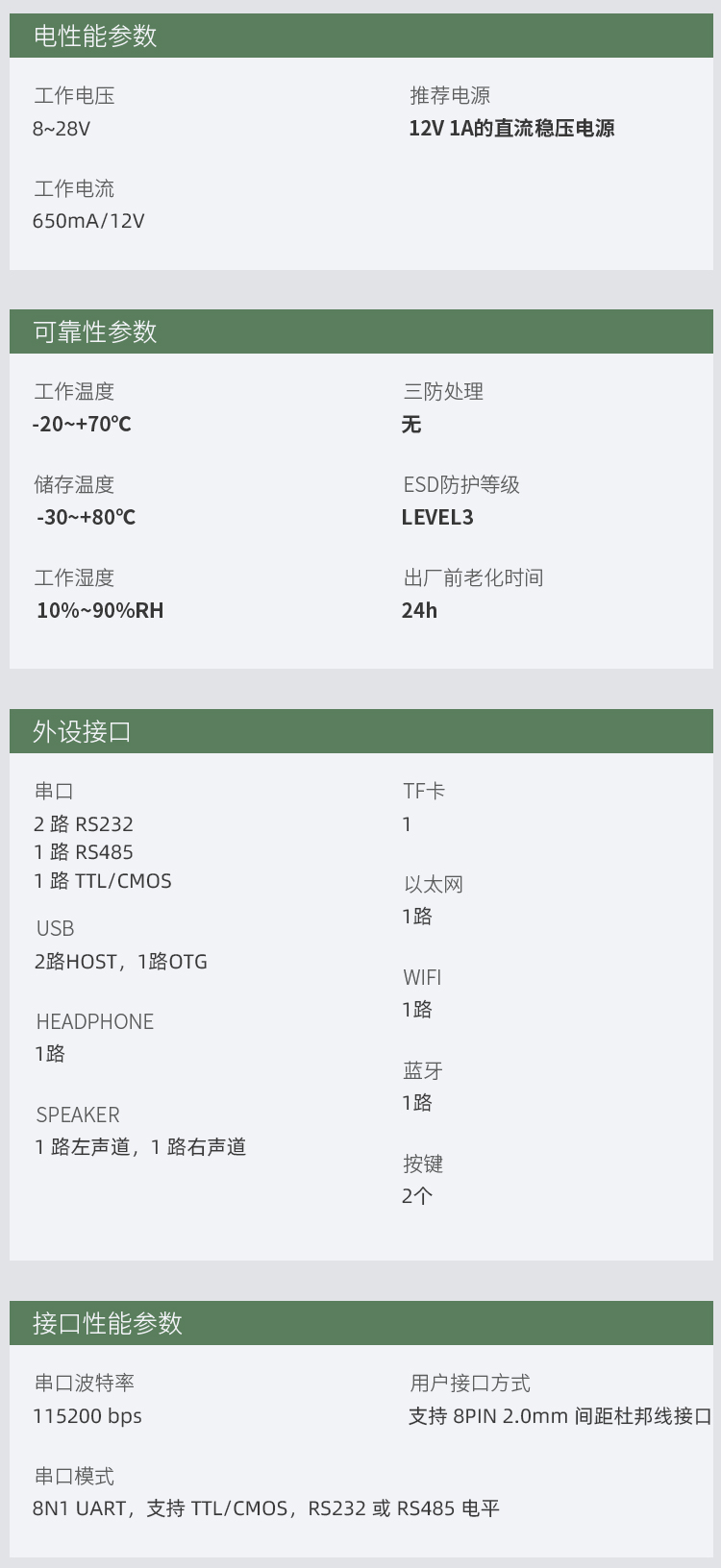 - 参数规格表