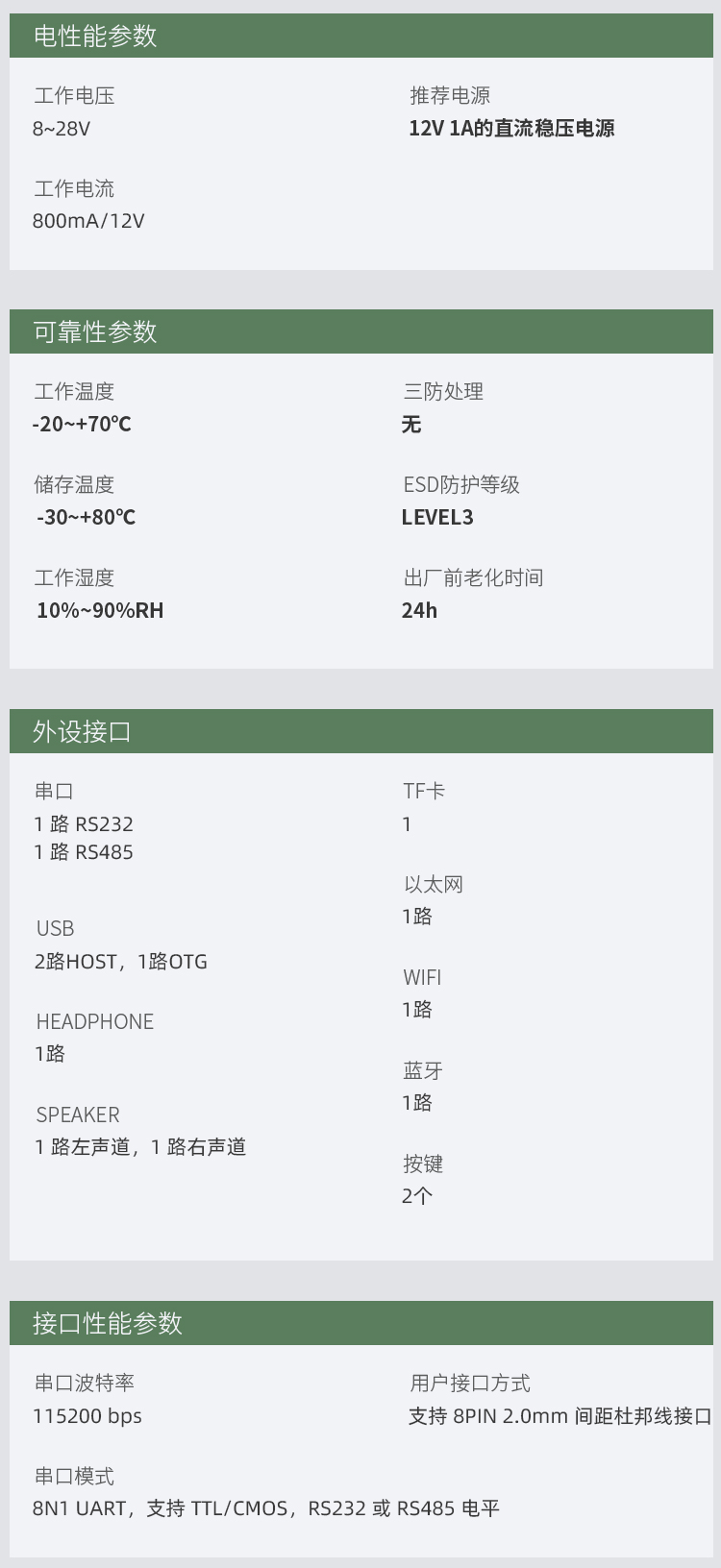 - 参数规格表