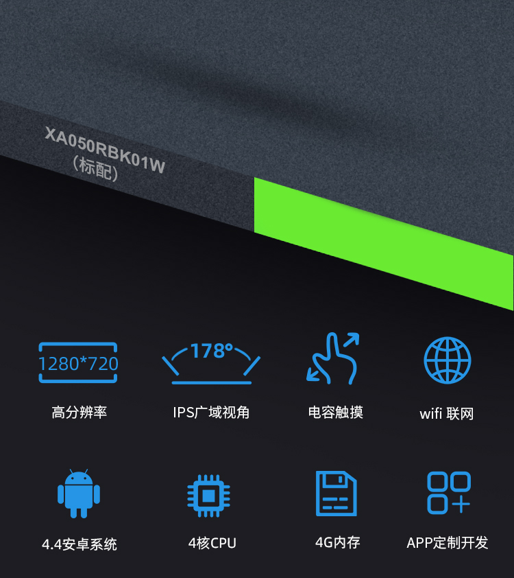 特点描述:XA050RBK01W系列产品搭载15vip太阳成安卓系统,是基于15vip太阳成 4 核 A7 硬件平台研发的拥有自主知识产权的智能图形显示系统。用户可通过安卓智能显示终端轻松实现触控及显示功能,并通过安卓通用安卓 APP 实现各种用户个性化需求,如 WIFI/4G 上网,有线上网,浏览网页,播放音乐,播放视频,数据拷贝等。还可通过 RS232,RS485 端口与外部设备进行通信。
