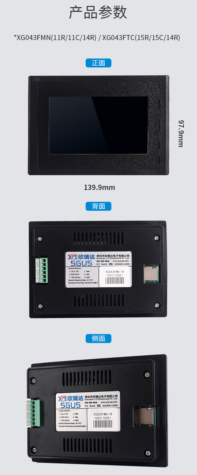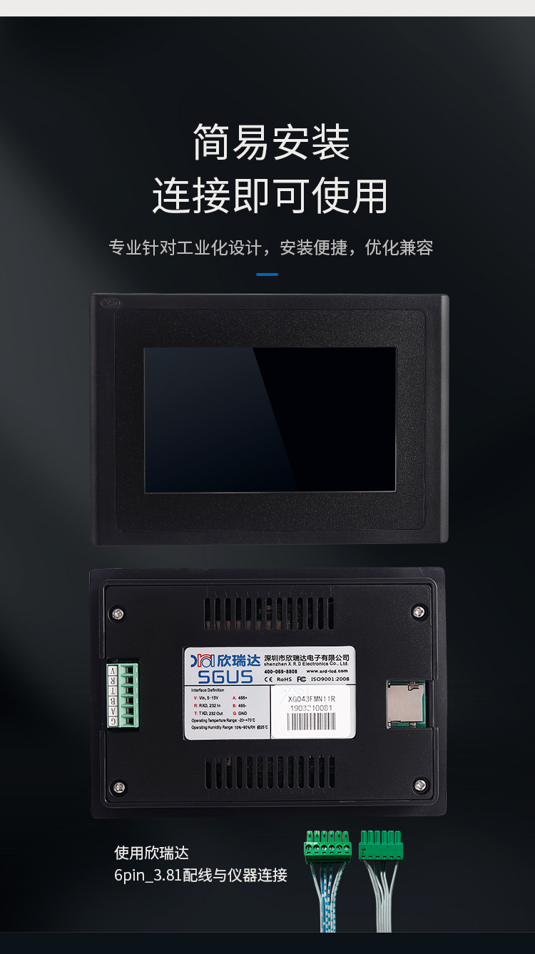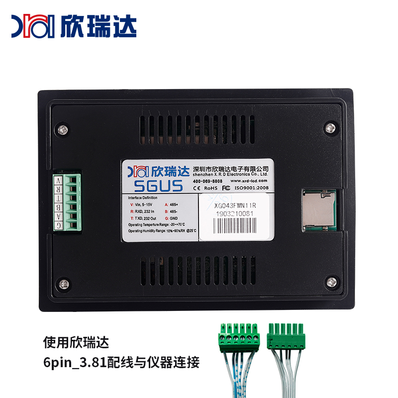 特点描述:XG043系列为高亮度显示屏产品, ABS工程材料外壳,搭载15vip太阳成SGUS(超级图形应用软件)系统,是基于15vip太阳成串口屏硬件平台研发的拥有自主知识产权的智能图形显示系统。用户可轻松实现触控功能,如数据文本录入、按键值返回、增量调节、弹出菜单等;也可以快速实现显示功能,如表盘时钟、图标变量、艺术字、曲线显示、列表显示、文本显示等。
