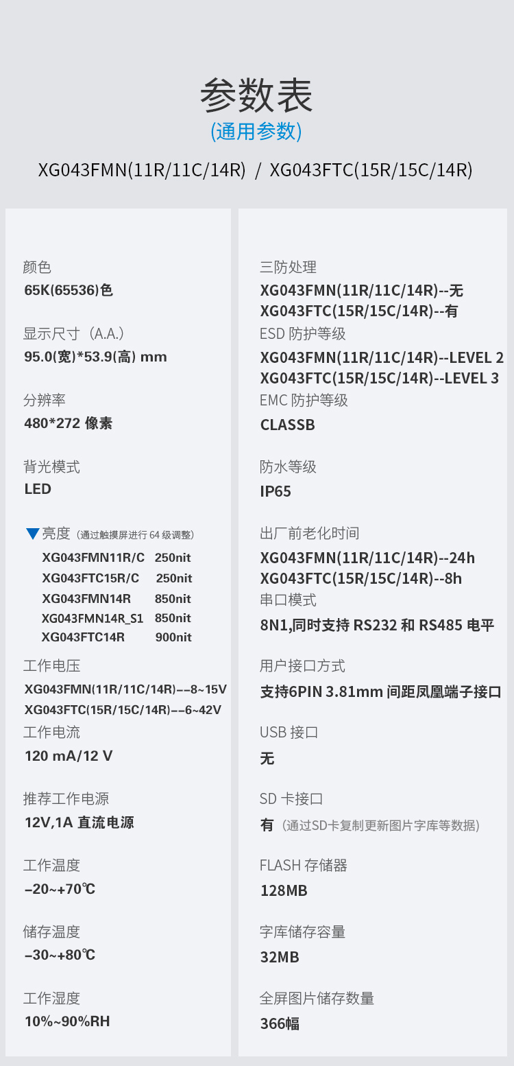 - 参数规格表