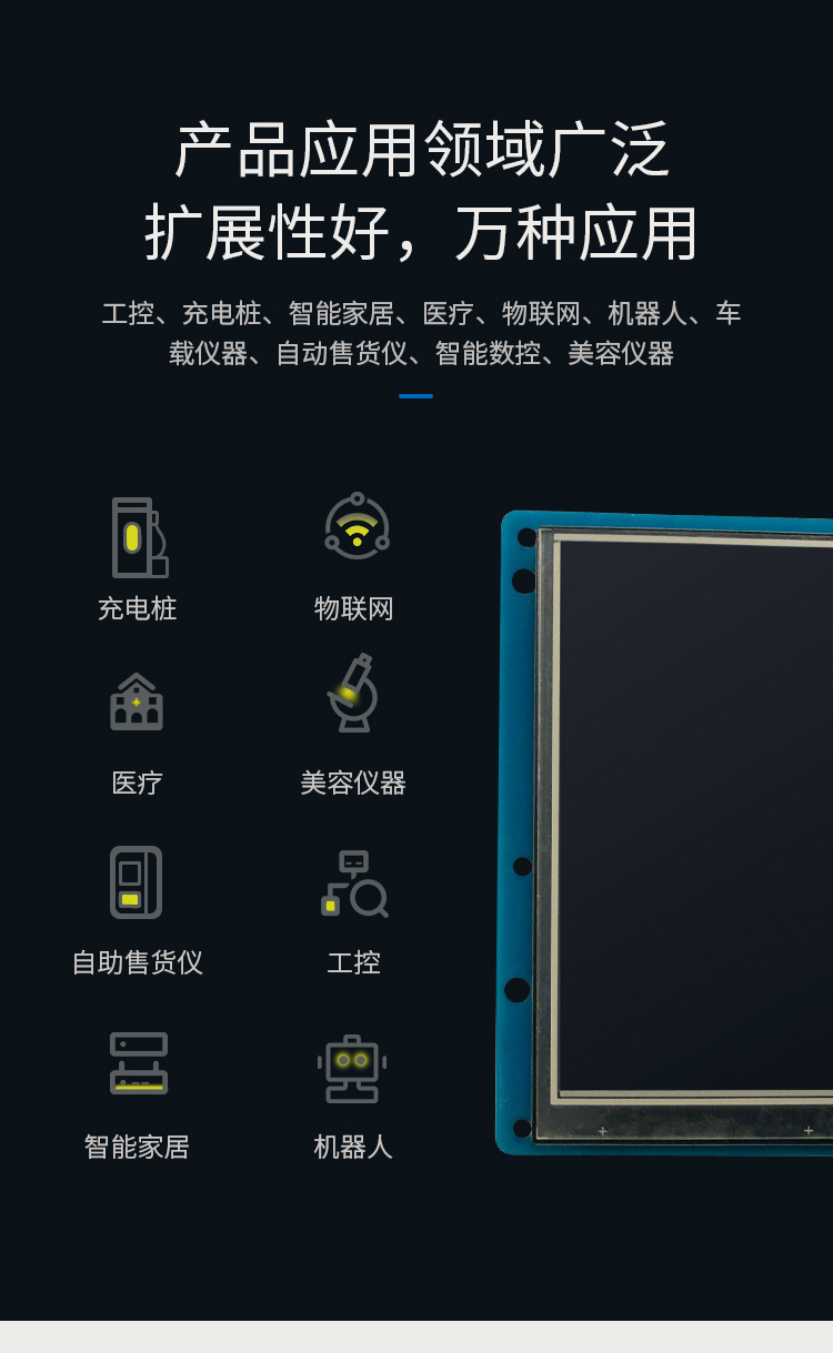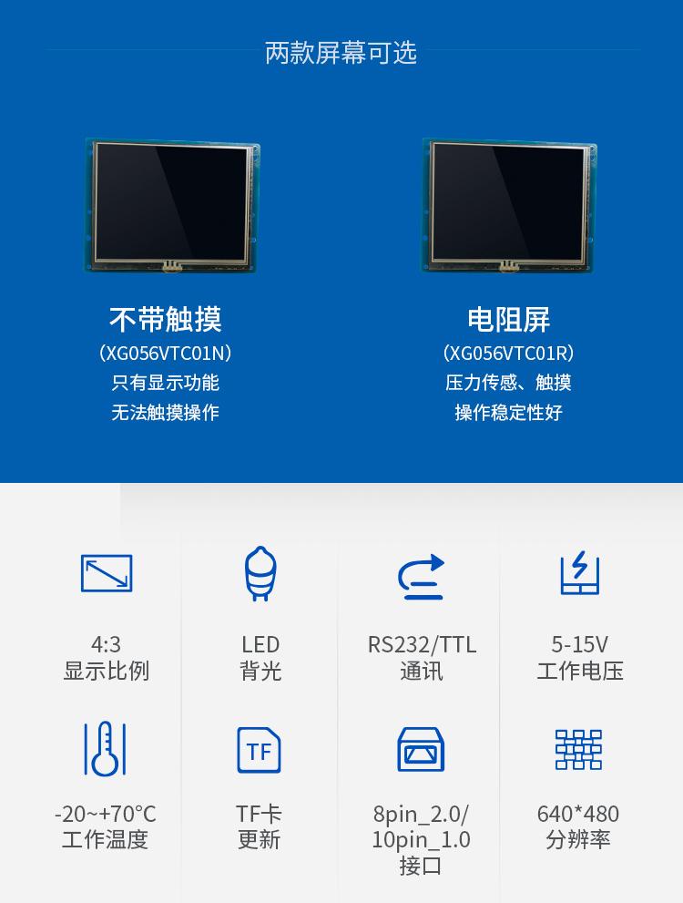 特点描述:XG056系列产品搭载15vip太阳成SGUS(超级图形应用软件)系统,是基于15vip太阳成串口屏硬件平台研发的拥有自主知识产权的智能图形显示系统。用户可通过SGUS串口智能显示终端轻松实现触控功能,如数据文本录入、按键值返回、增量调节、弹出菜单等;也可以快速实现显示功能,如表盘时钟、图标变量、艺术字、曲线显示、列表显示、文本显示等。