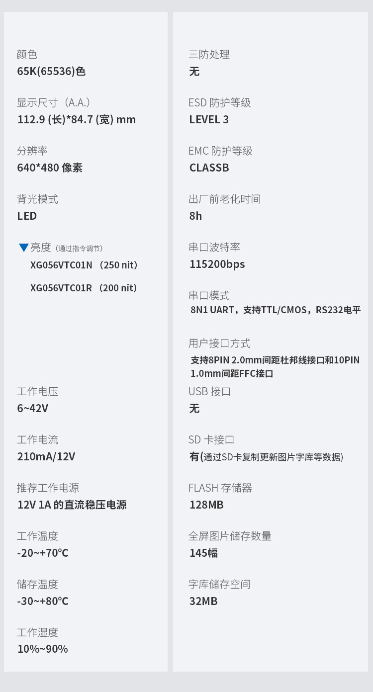 - 参数规格表