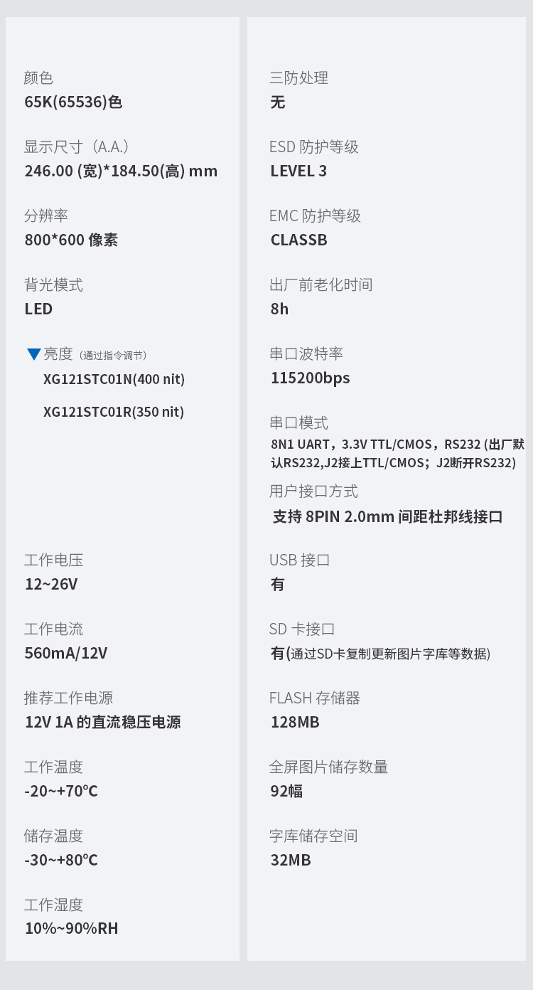 特点描述:XG121STD01N/R产品搭载15vip太阳成SGUS(超级图形应用软件)系统,是基于15vip太阳成串口屏硬件平台研发的拥有自主知识产权的智能图形显示系统。用户可通过SGUS串口智能显示终端轻松实现触控功能, 如数据文本录入、按键值返回、增量调节、弹出菜单等;也可以快速实现显示功能,如表盘时钟、图标变量、艺术字、曲线显示、列表显示、文本显示等。