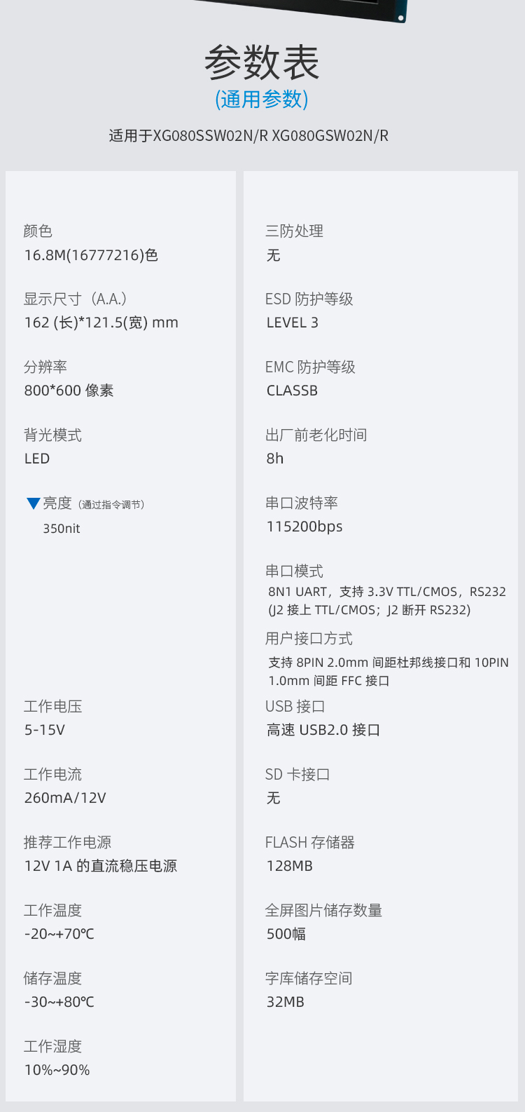 - 参数规格表