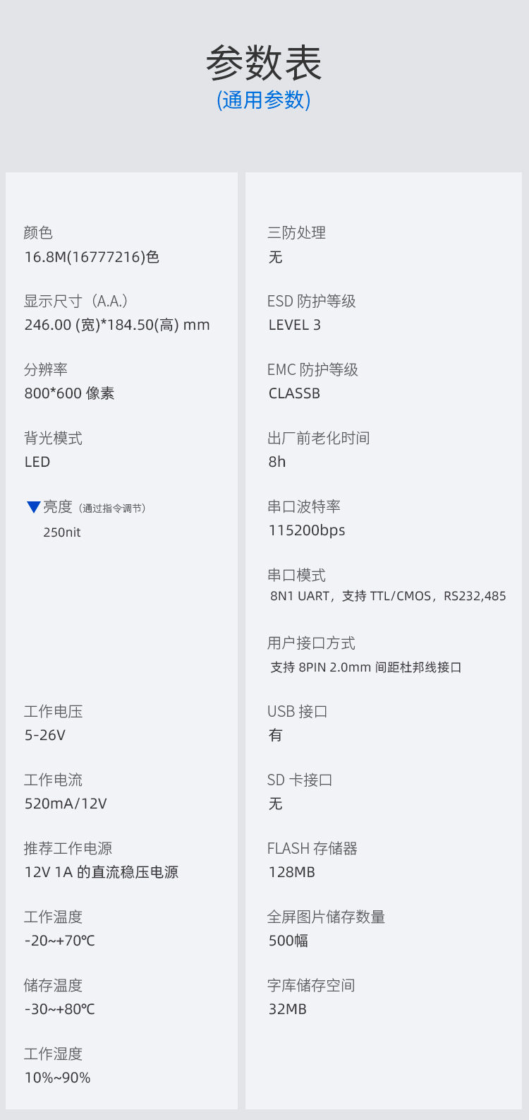 - 参数规格表