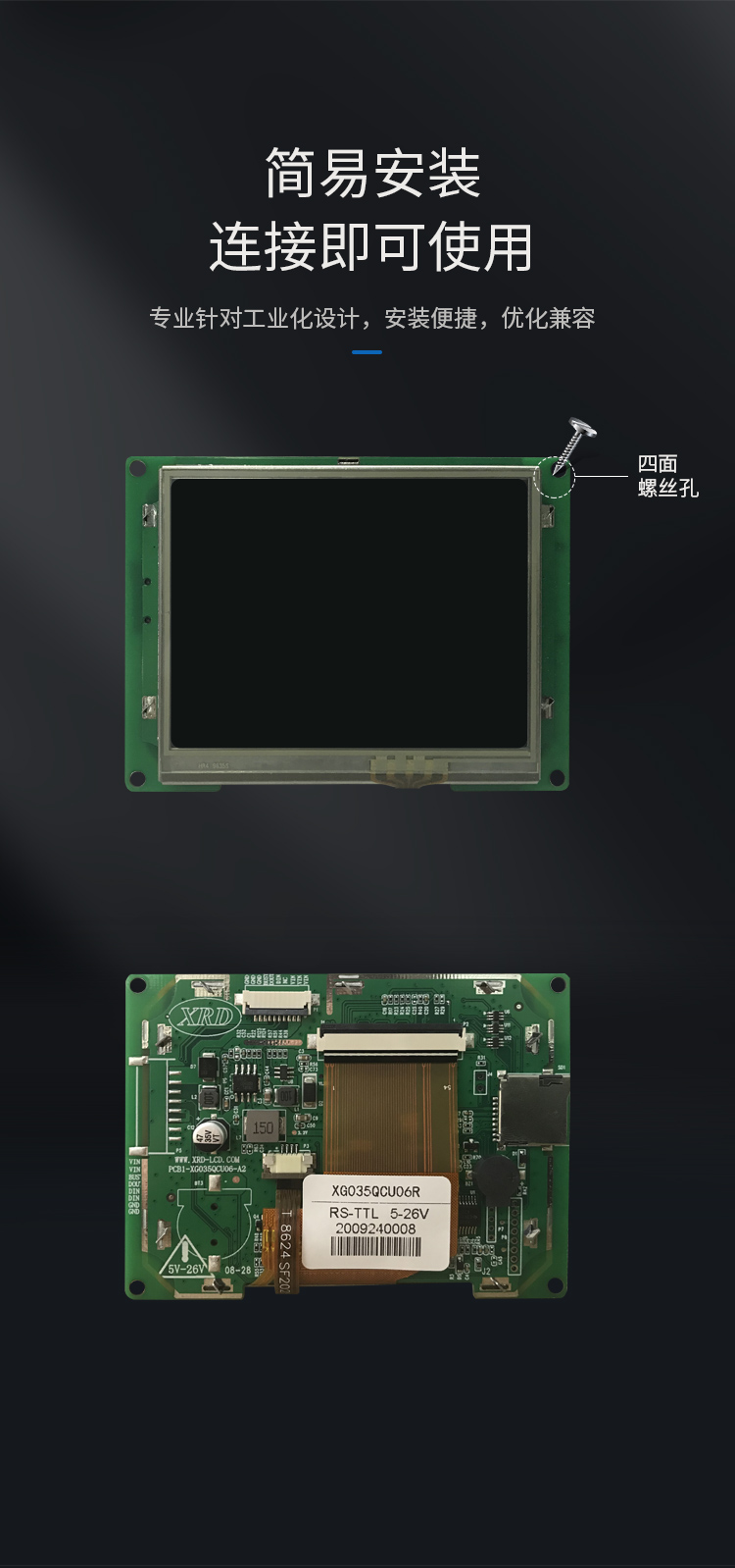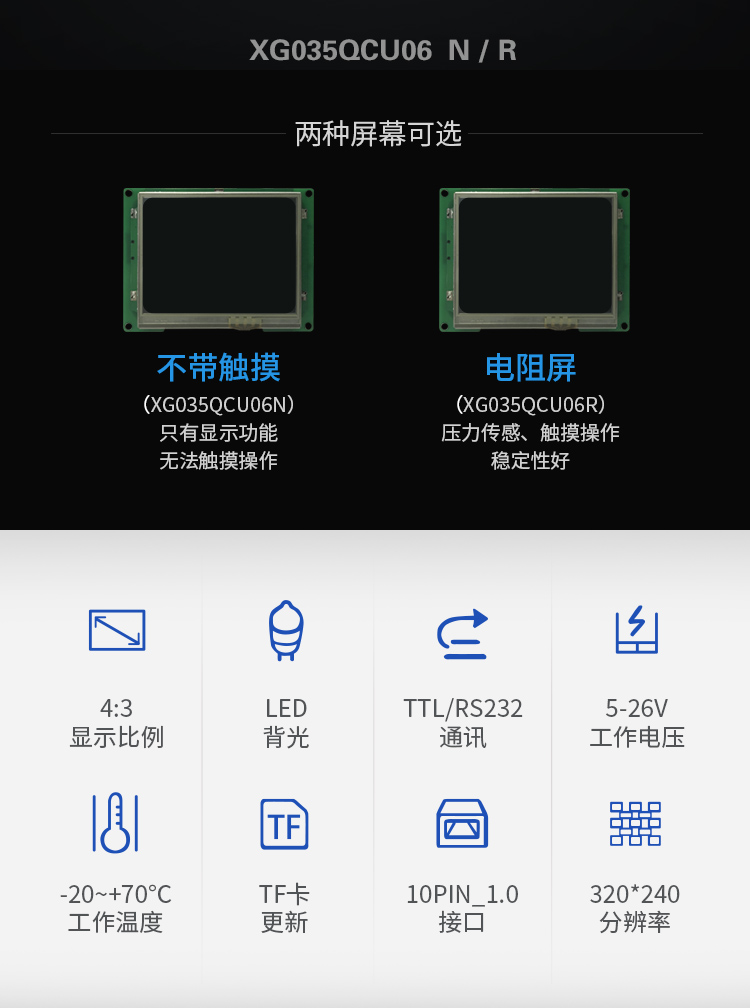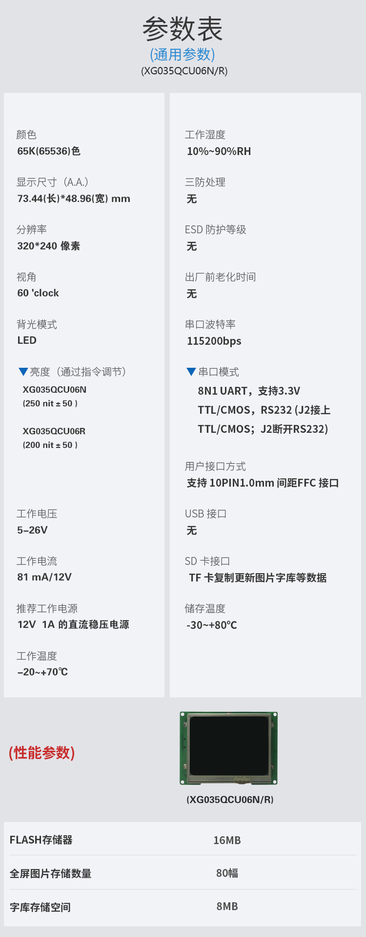特点描述:XG035系列产品搭载15vip太阳成SGUS(超级图形应用软件)系统,是基于15vip太阳成串口屏硬件平台研发的拥有自主知识产权的智能图形显示系统。用户可通过SGUS串口智能显示终端轻松实现触控功能,如数据文本录入、按键值返回、增量调节、弹出菜单等;也可以快速实现显示功能,如表盘时钟、图标变量、艺术字、曲线显示、列表显示、文本显示等。