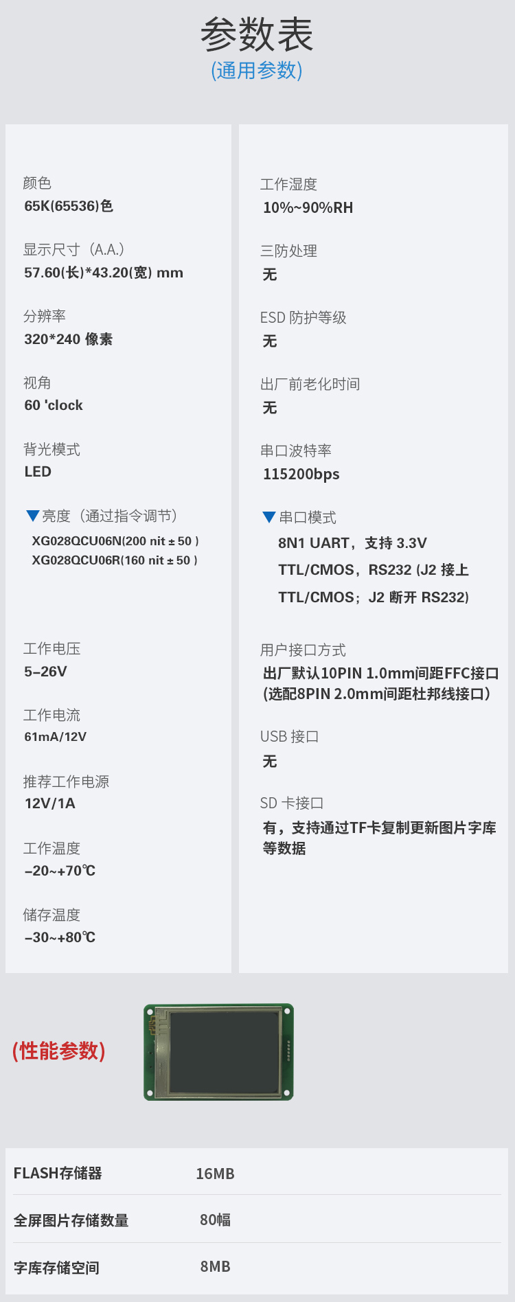 - 参数规格表