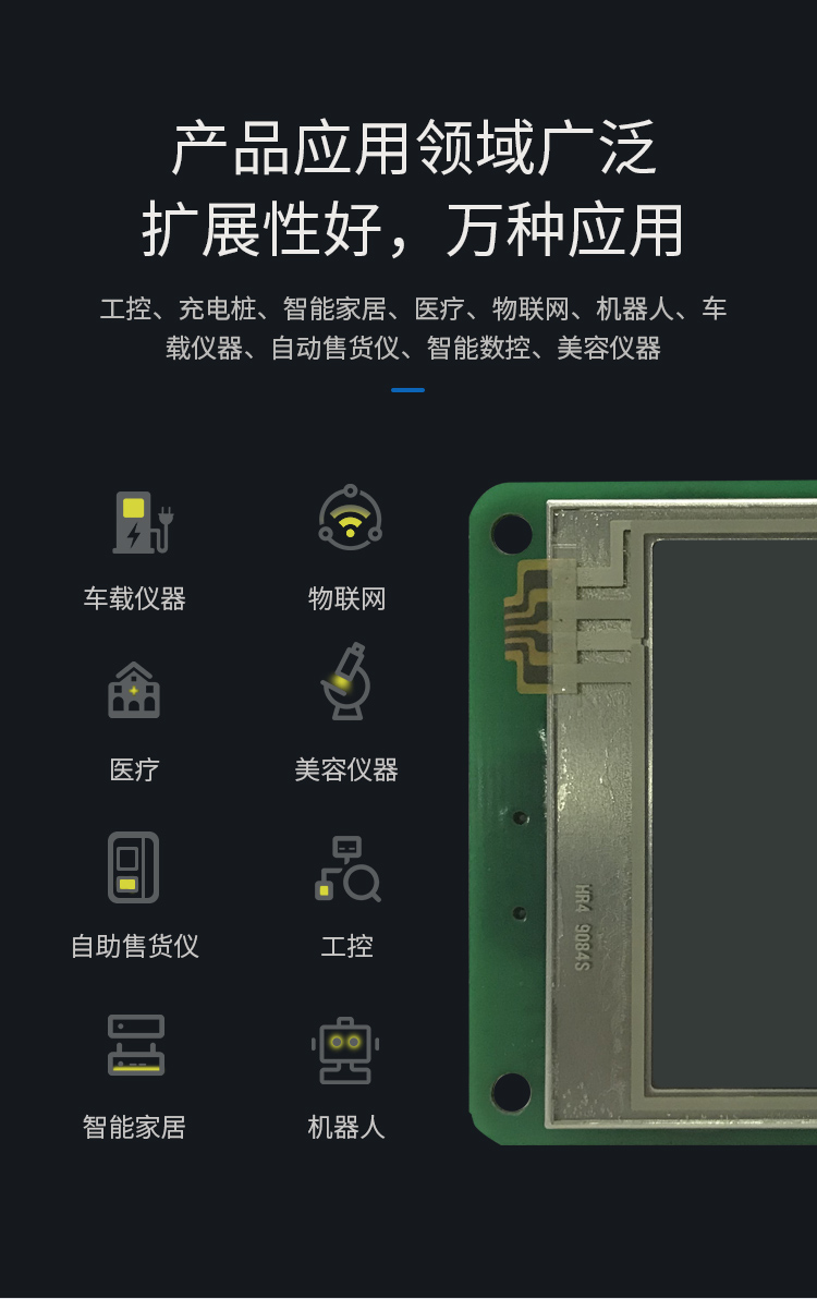 特点描述:XG028系列产品搭载15vip太阳成SGUS(超级图形应用软件)系统,是基于15vip太阳成串口屏硬件平台研发的拥有自主知识产权的智能图形显示系统。用户可通过SGUS串口智能显示终端轻松实现触控功能,如数据文本录入、按键值返回、增量调节、弹出菜单等;也可以快速实现显示功能,如表盘时钟、图标变量、艺术字、曲线显示、列表显示、文本显示等。