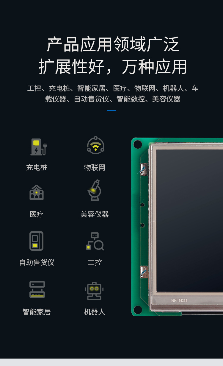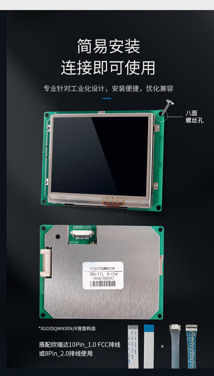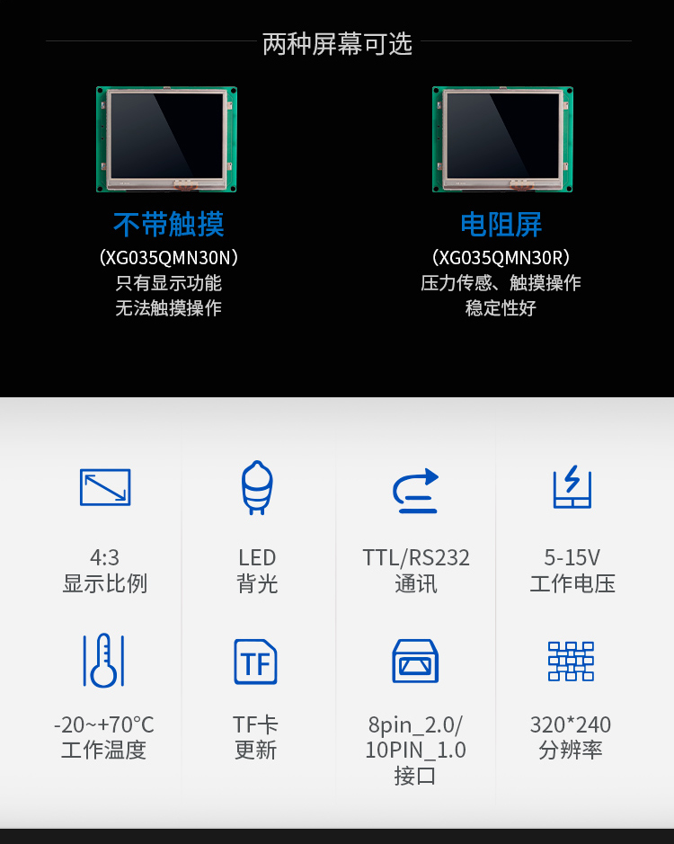 特点描述:XG035QMP06R系列产品搭载15vip太阳成SGUS(超级图形应用软件)系统,是基于15vip太阳成串口屏硬件平台研发的拥有自主知识产权的智能图形显示系统。用户可通过SGUS串口智能显示终端轻松实现触控功能,如数据文本录入、按键值返回、增量调节、弹出菜单等;也可以快速实现显示功能,如表盘时钟、图标变量、艺术字、曲线显示、列表显示、文本显示等。